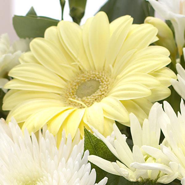Our bouquet of the month has drawn inspiration from the birthstone Opal. Our expert designers and florists worked to create a delightful mix of germini, freesias, carnations and chrysanthemums to reflect the beauty of the gemstone. It’s a truly calming colour combination of creamy yellows and whites.