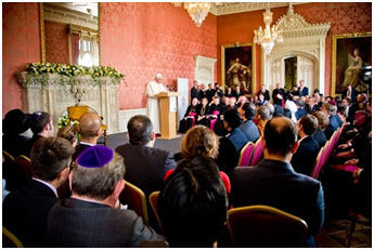 “The Pope was visiting St Mary’s University College in Twickenham and we did two large pedestal arrangements for the chapel as well as flowers for the mantelpiece and fireplace in the Waldegrave Drawing Room and in the Pope’s private rest room.”