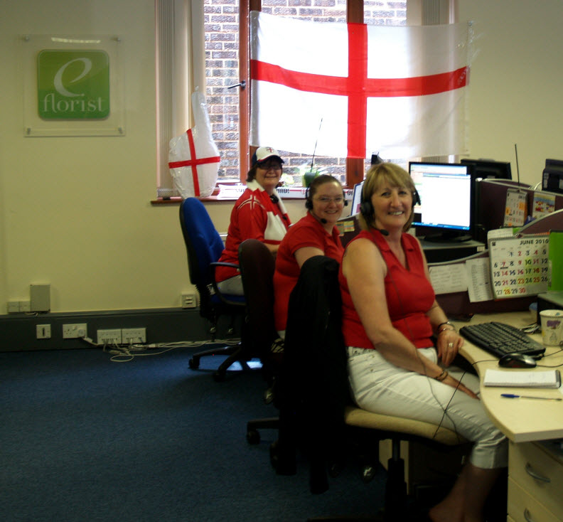 In the office today we have all waiting with baited breathe for this afternoon's vital England game. To get in the mood we are all dressed up in red and white - well most of us; Paul's wrapped in an Italian flag- guess where he's from, and Brad our resident Aussie was going to dress in Slovenian costume - thankfully he hasn't!