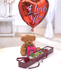 But, if you’re looking for something a little extra, then check out our Valentine Flower Gift Sets. An “I love you” balloon, cute brown teddy bear and a box of delicious milk chocolates can complete your flower gift and will certainly stand out, especially if you are sending flowers to her place of work.